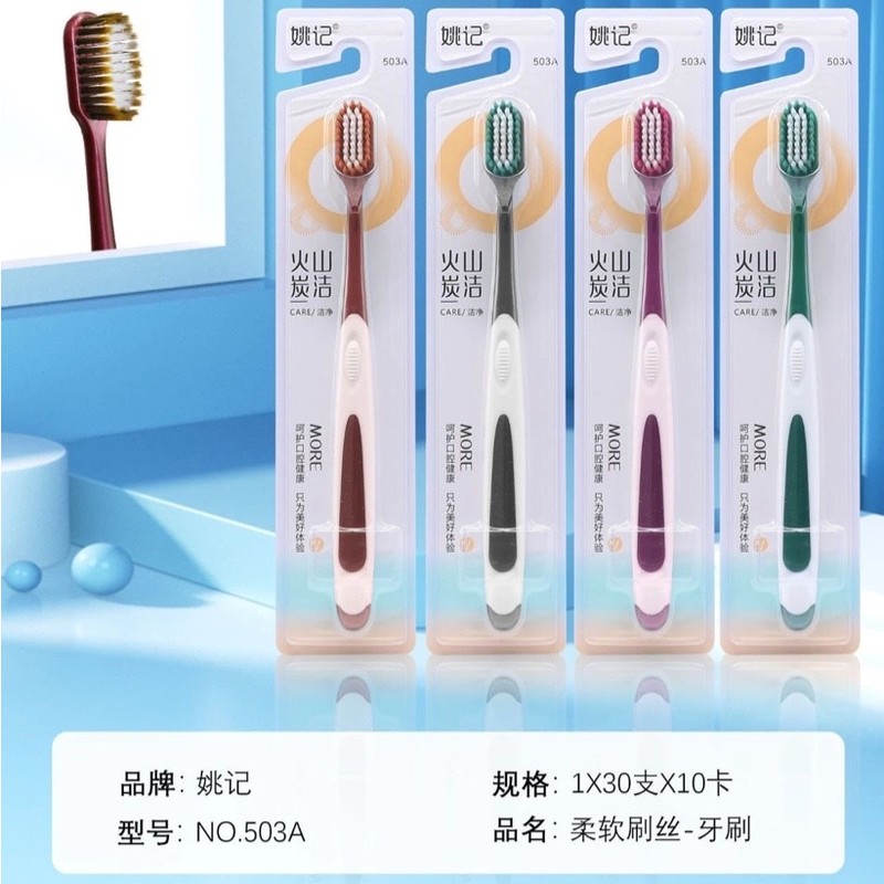 姚记503A软毛牙刷(火山炭丝毛)1*30支/打