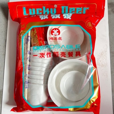 鸿运鹿6045稻壳套装餐具、餐套10人份、20包/件
