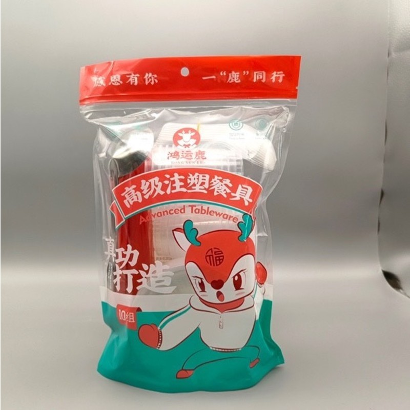 鸿运鹿001一次性注塑餐具-10套装
